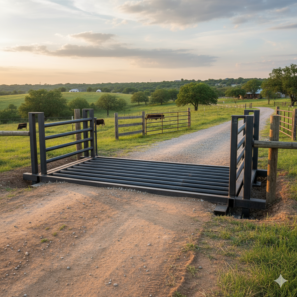 Texas-tough cattle guards, custom fabricated and professionally installed for lasting durability and easy access across your property.
